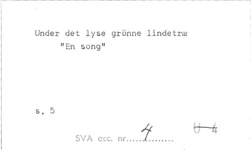 //// Under det lyse grönne lindetrs "En song" //// s. 5 //// A 0—4 //// SVA ccc. nr.../... ////