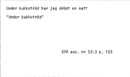 //// Under kukkoträd har jag drömt en natt "Under kukkoträd" //// SVA acc. nr 53:3 p. 193 ////