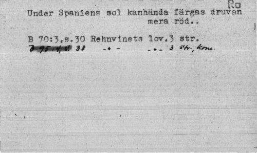 //// ¦ pa //// Under Spaniens sol kanhända färgas druvan //// mera röd.. //// B 70:3.3.50 Rehnvineta lov.3 str. //// 9* 3/ - „«._ 3 v/y.,*^*. //// K ¦ //// » * .. • ////