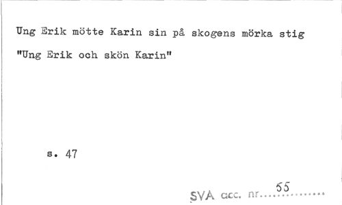 //// Ung Erik mötte Karin sin på skogens mörka stig "Ung Erik och skön Karin" //// s. 47 //// 55 //// SVAv acc. nr... ////