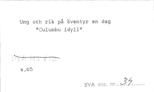 //// Ung och rik på äventyr en dag "Culumbu idyll" //// s .65 //// SVA ccc. nr. .J.t... ////