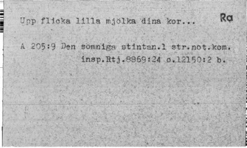//// j Upp flicka lilla mjölka dina kor... //// A 205:9 3en sömniga stintan.l str.not.kom. //// insp.Rt3.9869:24 o.12150:2 b. ////