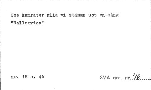 //// Upp kamrater alla vi stämma upp en sång "Eallarvisa" //// nr. 18 S. 46 SVA acc. nr ////