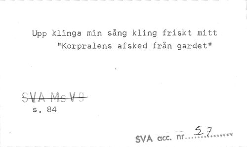 //// Upp klinga min sång kling friskt mitt "Korpralens afsked från gardet" //// SVA Mo V — //// s. 84 //// SVA ccc. ////