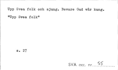 //// Upp Svea folk och sjung. Bevare Gud vår kung. »Upp Svea folk" //// s. 27 //// SVA acc. nr...1?.^... ////