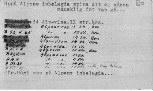 //// Uppå Alpens isbelagda spira dit ej någon //// . mänsklig fot kan gå... //// SMMfeH Alp-visa. 11 str.kom. //// filft** ros', ') S*. , A-». 3 fö $'/>¦./<**.. //// Ijsf^ig^fb Q fpcu.sre*'. 'g&K. //// 'B fs, s' J/ 77. t A^c. //// SO f ipt K S- ros*, y3 f/r. ' //// # /i>-y '/s**. //// f/n:l3 .7: //// Jfr.Högt upp på Alpens isbelagda... ////
