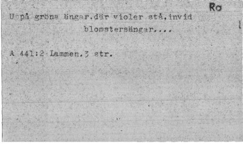 //// KO //// U -pa grön?? ängar, där violer stå, invid //// | //// blomstersängar... * //// A 441- 2•lammen,5 str. //// . - ¦"¦¦ . 4 . . ; ... . *. .. t . v,,.-' . , • ' t • • •." • ¦ • . '*•'•; .. •• • ////