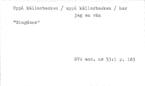 //// Uppå källarbacken / uppå källarbacken / har //// jag en vän //// "Ringdans" //// SYÅ acc. nr 53:1 p. 185 ////