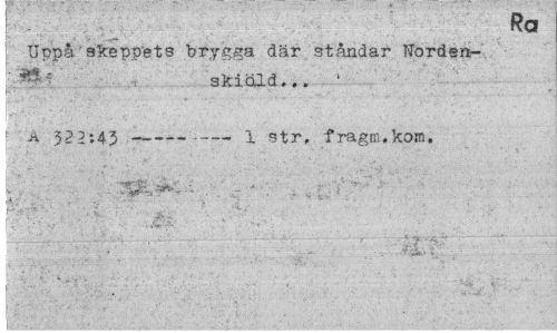 //// I Ra //// j Uppå'skeppets brygga där ständar Uorden- //// skiold... 1 //// | A 522:43 ---1 str, fragm.kom, //// V 7 ¦¦'¦¦'¦¦ . ' . ..V V'"'¦ ' ' } //// ;--.,.¦-¦..•¦¦'-. '¦>¦<¦' ¦ . ...i-. , . . , ^'J^F^v" ¦ " - ////