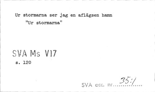//// Ur stormarna ser jag en aflägsen hamn "Ur stormarna" //// SVA Ms V17 //// s. 120 //// 3S'/ //// SVA ccc. nr...,.,../... ////