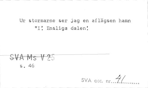 //// Ur stormarne ser jag en aflägsen hamn "I' Ensliga dalen! //// s. 46 //// SVA ccc. nr. //// J1... ////
