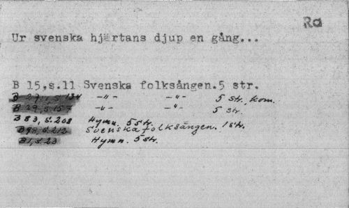 //// aa //// Ur svenska hjärtans djup en gång... B 15,s.ll Svenska folksången.5 str. //// -*fK t/z dt H* tKS^jc^. //// sy/ s la "y** " ¦ ^ ^ ////