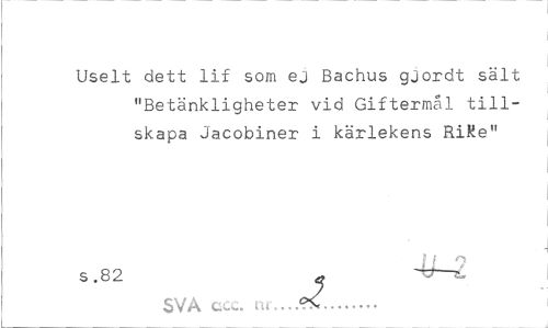 //// Uselt dett lif som ej Bachus gjordt sält "Betänkligheter vid Giftermål tillskapa Jacobiner i kärlekens RiKe" //// i l o //// s .82 a //// SVA ccc. iu\. "v... ////