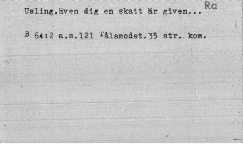 //// Usling,även dig en skatt är given... B 64:2 a,s.121 tålamodet.35 str.. kom. ////