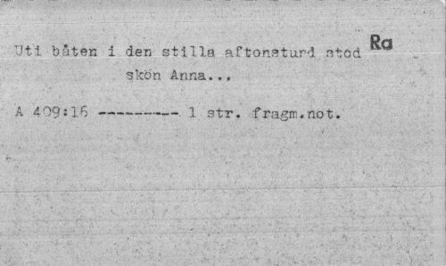 //// Ra //// TJti båten i den stilla aftonstund ntod skon Anna... //// A 4-09:16---1 str. fragm.not. ////