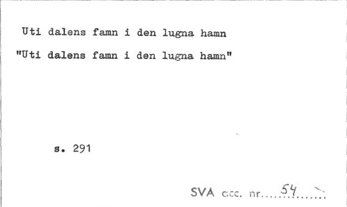 //// Uti dalens famn i den lugna hamn //// "Uti dalens famn i den lugna hamn" //// s. 291 //// SVA ccc. nr...f.V ////