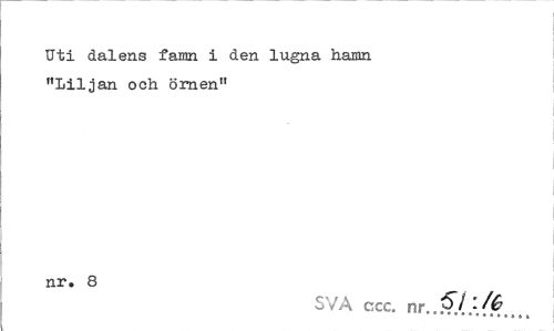 //// Uti dalens famn i den lugna hamn //// "Liljan och örnen" //// nr. 8 //// SVA ccc. nr. ////