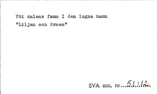 //// Uti dalens famn I den lugna hamn //// "Liljan och örnen11 //// SVA cscc. ////
