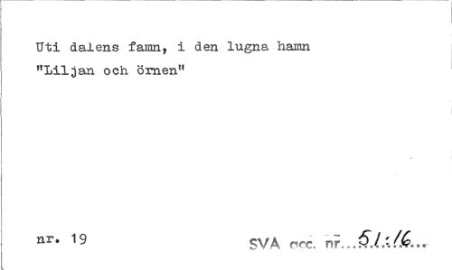 //// Uti dalens famn, vid den lugna hamn //// "Liljan oc& Örnen" //// nr- 19 SVA acc. nr.. ////