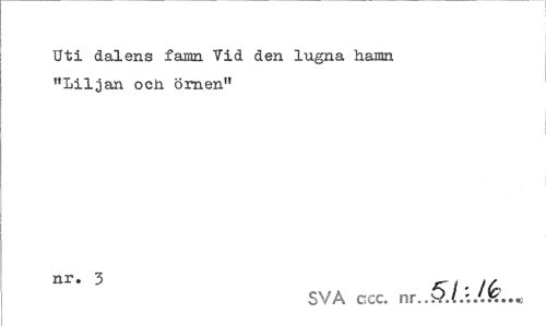 //// Uti dalens famn, vid den lugna hamn //// "Liljan oc& Örnen" //// nr* 5 Kl ' M //// SVA ccc. nr../.«..« ////