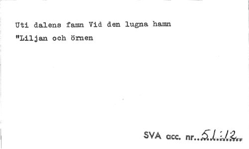 //// Uti dalens famn Vid den lugna hamn //// "Liljan och örnen //// SVA acc. nr..£>..1.1.1 ////