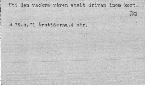 //// Uti den vackra våren smalt drivan inom kort... B 75,s.71 Årstiderna.4 str. ////