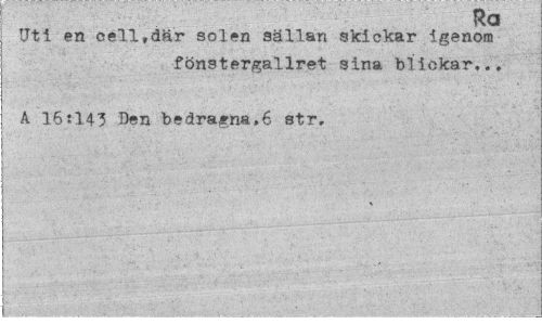 //// Ra //// Uti en cell»där solen sällan skickar igenom fönstergallret sina blickar,.» //// A 16:143 Den bedragna.6 str. ////