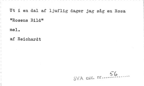 //// Ut i en dal af ljuflig dager jag såg en Rosa //// »Rosens Bild" //// mel. //// af Reichardt //// SVA ccc. nr/Zff.lÄ.,,, ////