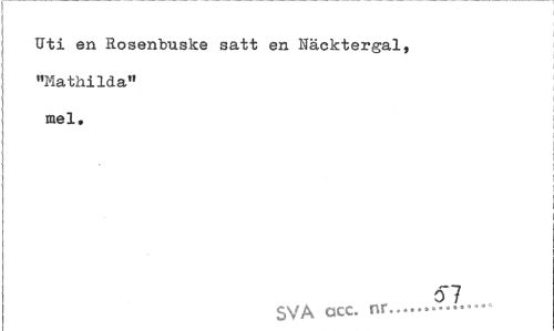 //// Uti en Rosenbuske satt en Häcktergal, "Mathilda" mel. //// i //// 07 . //// SVA acc. ... ////
