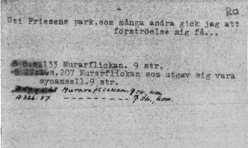 //// m I , I |¦".> U-! ' itoj //// Oti Friesens park,som många andra gick jag att //// förströelse mig få,,, //// jfN&g&n? Mararfllekan. 9 str. //// 27 sSjfes»207 fara rfl i ekan som utgav sig vara aymamsell.9 3tr. //// #3JU: - ---^ ////