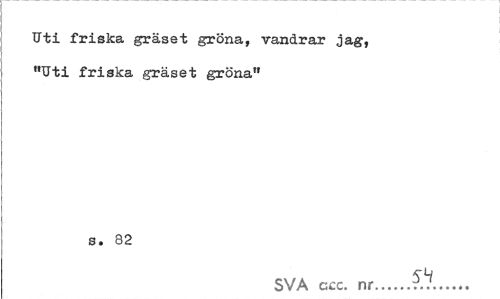 //// Uti friska gräset gröna, vandrar jag, //// "Uti friska gräset gröna" //// s. 82 //// SVA ccc. nr...V.:...,. ////