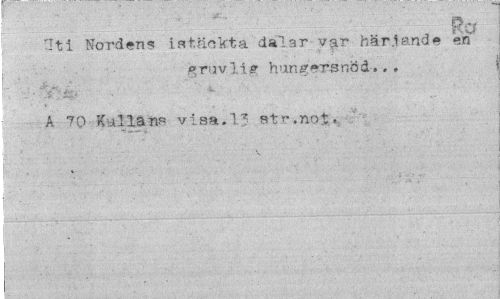 //// ¦ //// I rCf //// •Iti Nordens istäokta dalar var härjande en' //// gruvlig hungersnöd.., A 70 Kullans visa.13 str.not, ////