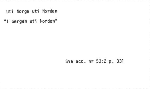 //// Uti Norge uti Norden "I bergen uti Norden" //// Sva acc. nr 53:2 p. 331 ////