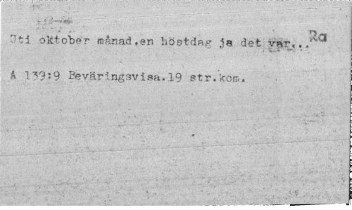 //// --- ¦ . - ; v . ... .^tt.i::^':-^ ¦ • ' ^ • ¦ z. . — - --- ---. i //// IvCI //// tit i oktober månad,er höstdag ja det var... A 139:9 Béväringsvisa.19 str.kom. ////