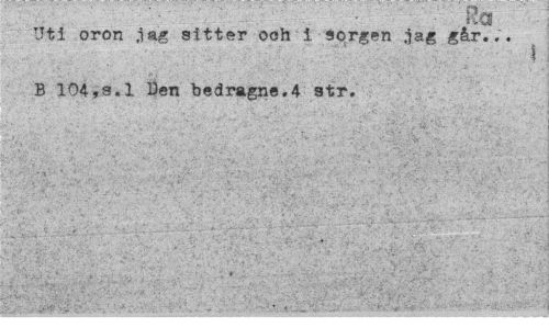 //// Ma ' //// Uti oron jag sitter ooh i sorgen jag går... B 104,s.l Ben bedragne.4 str. ////