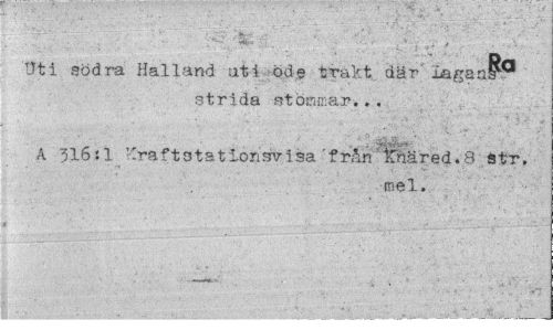 //// Si» ' . - , / - .'« //// Uti södra Halland uti öde trakt där Lagan //// strida störtar.. . //// A 316:1 '-raftstationsvisa 'från tTftäred.8 str. //// mel. ////