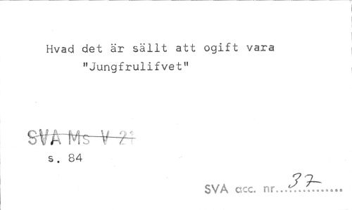 //// Hvad det är sällt att ogift vara "Jungfrulifvet" //// s. 84 //// SVA ccc. nr ////