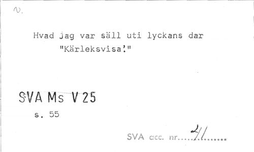 //// A //// Hvad jag var säll uti lyckans dar "Kärleksvisa11 //// SVA Ms V 25 //// s. 55 //// SVA ccc. nr...I.L... ////