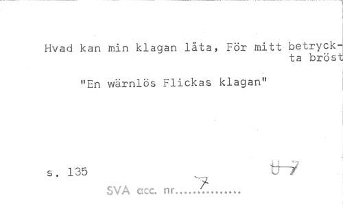 //// Hvad kan min klagan låta, För mitt betryckta brös" //// "En wärnlös Flickas klagan" s. 135 //// SVA ccc. nr... ////