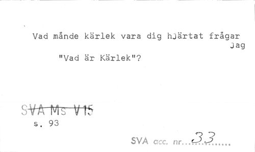 //// Vad månde kärlek vara dig hjärtat frågar //// jag //// "Vad är Kärlek"? //// S¥A Ms VI? //// s. 93 //// SVÅ acc. nr. 3 ////