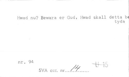 //// Hwad nu? Bewara er Gud, Hwad skall detta b //// tyda //// nr • 94 -4-L 1 - //// /j, t—t.) //// SVA ccc. nr...<.y... ////