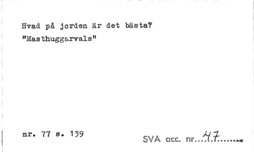 //// Hvad på jorden är det bästa? "Masthuggarvals" //// nr. 77 s. 139 //2 //// SVA ccc. nr___t.f... ////
