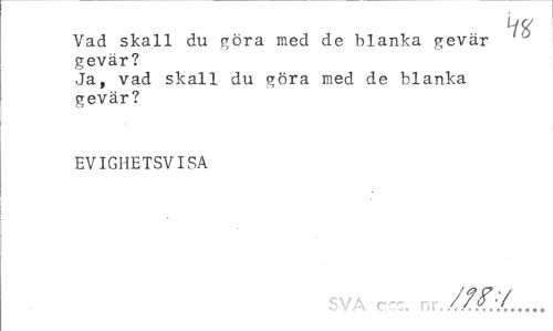 //// If v //// Vad skall du göra med de blanka gevär gevär? //// Ja, vad skall du göra med de blanka gevär? //// EVIGHETSVISA //// SVA ccc, nr./^'/,... ////