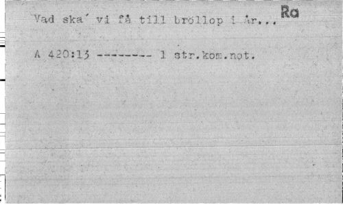//// Ra //// | Vad ska' vi ffi till bröllop i -r. . . //// % A 4 20:15 --- 1 ^r.kor:.npt. //// h. i //// I. ,<V*";i I? I . ''S t K h H gj1 .S ' - Bl ////