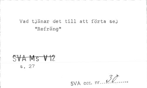 //// Vad tjänar det till att förta sej "Refräng" //// s. 27 //// SVA ccc. nr. ////