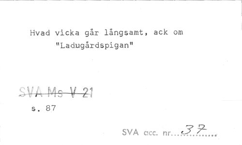 //// Hvad vicka går långsamt, ack om "Ladugårdspigan" //// s. 87 //// SVA ccc. nr. ////
