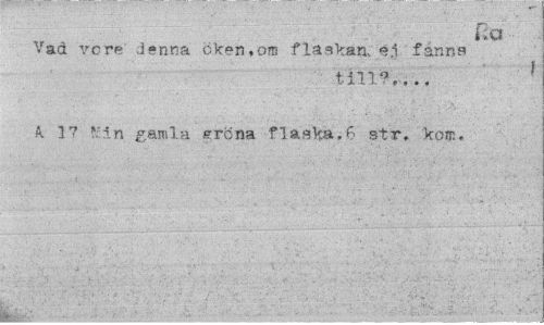 //// Rq //// Vad vore denna öken,om flaskan, ej fanns //// till'0... //// k 37 ?:-5.n gamla gröna flaska, f? str. kom. ////