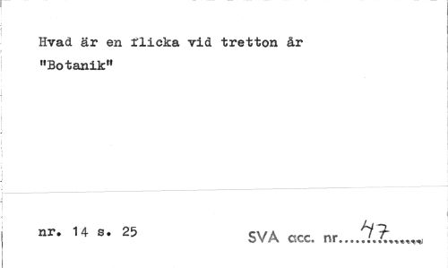//// Hvad är en rlicka vid tretton år "Botanik" //// 14 s' 25 SVA ccc. nr ////
