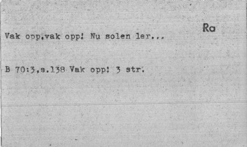 //// Ra //// Vak or>p,vak opp! Nu solen ler.,. B 70:3.3.138 Vak opp: 3 str. ////
