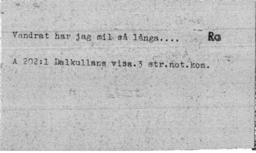 //// Vandrat har jag mil så långa... A 202:1 Dalkullans visa.5 str.hot.kom. ////